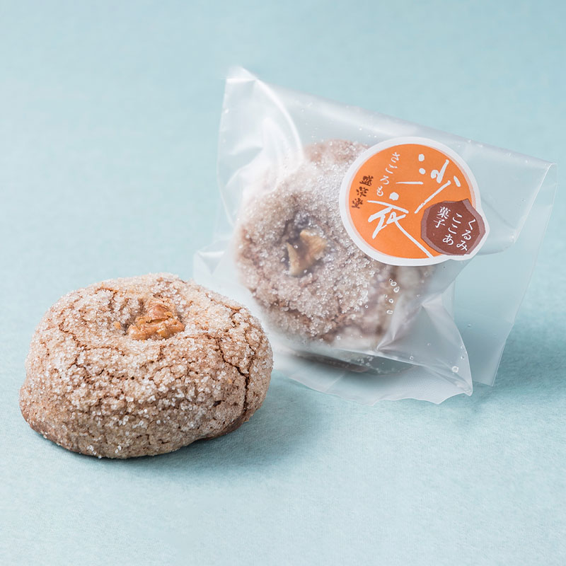 - 沙衣(さごろも) … くるみ入りの白あんをココアの生地で包んだ焼き菓子。