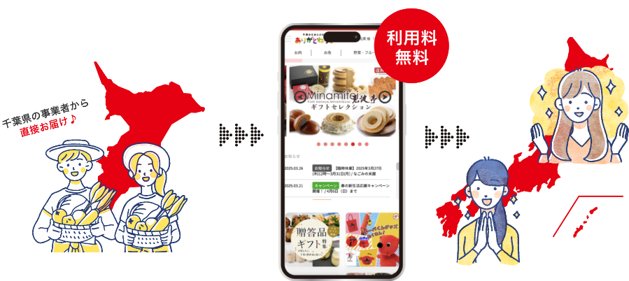 千葉県の特産物や民芸品などを取扱い、生産業・観光業・飲食業・宿泊業などの地域産業に貢献するサイトです。